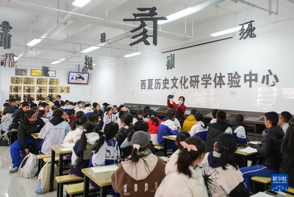 11月14日,宁夏银川市第二十四中学组织开展一堂别开生面的思政课。400余名学生来到位于宁夏银川市的西夏陵国家考古遗址公园,通过参观和沉浸式体验等方式,使学生在了解西夏相关历史文化,增强他们对文化遗产的保护意识。新华社记者 杨植森 摄