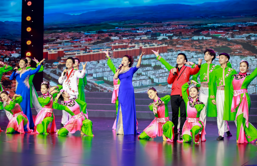 由中宁县大战场农民合唱团演绎的合唱情景表演《我们的故事,我们的歌》,将移民群众的奋斗历程与移风易俗实践深度融合。作为曾登上全国文明乡风大会压轴舞台的农民团体,团员们以亲身经历为蓝本,通过《逐梦大战场》《红彤彤的日子》等篇章,生动再现了从西海固移民到黄河岸边后,在党和政府的带领下实现产业丰收、生活富足的同时,主动摒弃高额彩礼、践行婚事新办的文明转变,既展现了新时代农民的精神风貌,更印证了中卫市移风易俗工作在基层的深刻影响力。