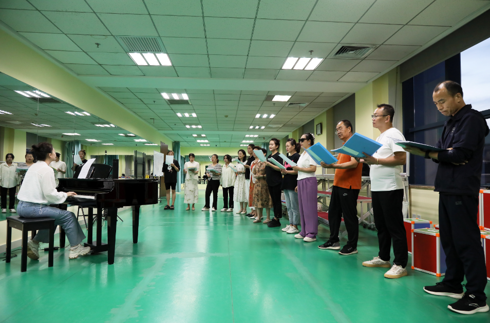 在工人文化宫“宁工学堂”公益培训教室内,宁夏“花儿”传承人撒丽娜正在带领“石榴籽”花儿艺术团的学员们遨游在“花儿”的海洋中,撒老师随乐而动的指挥手势利落生动,提示话语精准贴心,队员们的演唱声情并茂、充满感染力。