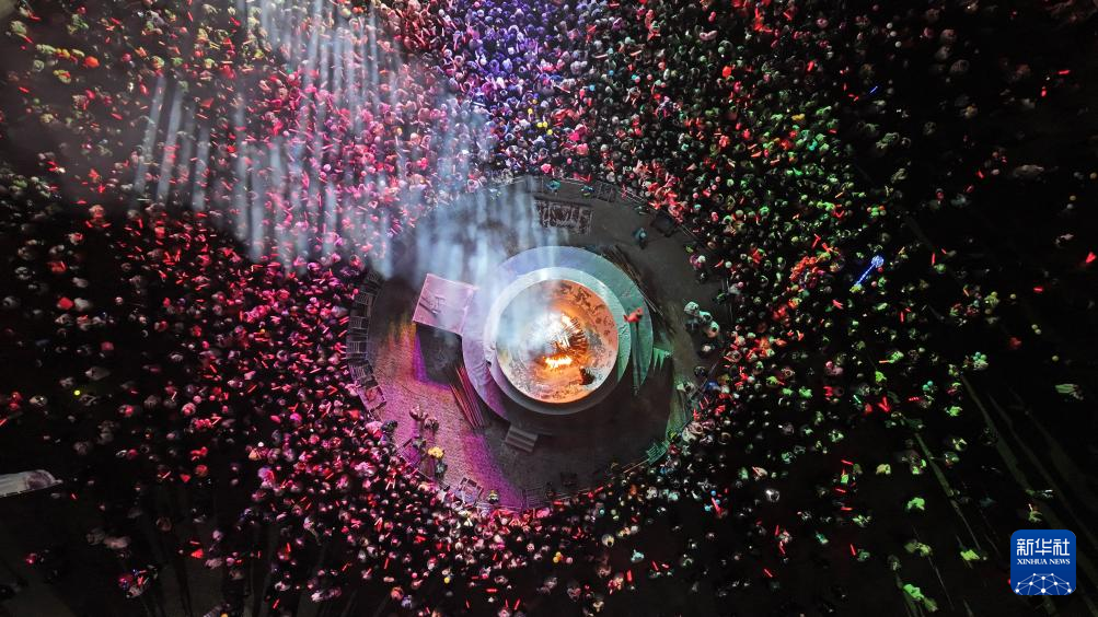 2025年12月31日晚,人们在银川文旅集团览山公园参加跨年活动(无人机照片)。