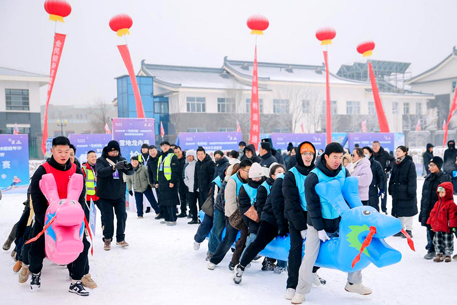 冰雪嘉年华开幕式上,专业滑雪选手带来的国风滑雪表演展现冰雪运动与传统文化的融合之美,惊艳了现场众多市民和游客。而同步启幕的冰雪畅游邀请赛兼顾竞技性与趣味性,分为团体和个人两大类别:雪地拔河、雪地龙舟等团体项目考验协作精神,雪上趣味高尔夫、旱地冰壶等个人项目则为游客提供轻松参与的机会,共吸引了来自利通区当地及周边地区的30余支代表队参加,预计比赛期间将带动近万人次参与体验。