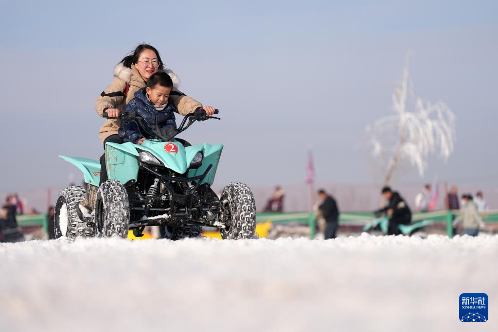 1月3日,人们在宁夏银川市贺兰县的稻渔空间冰雪乐园体验冰雪游乐项目。