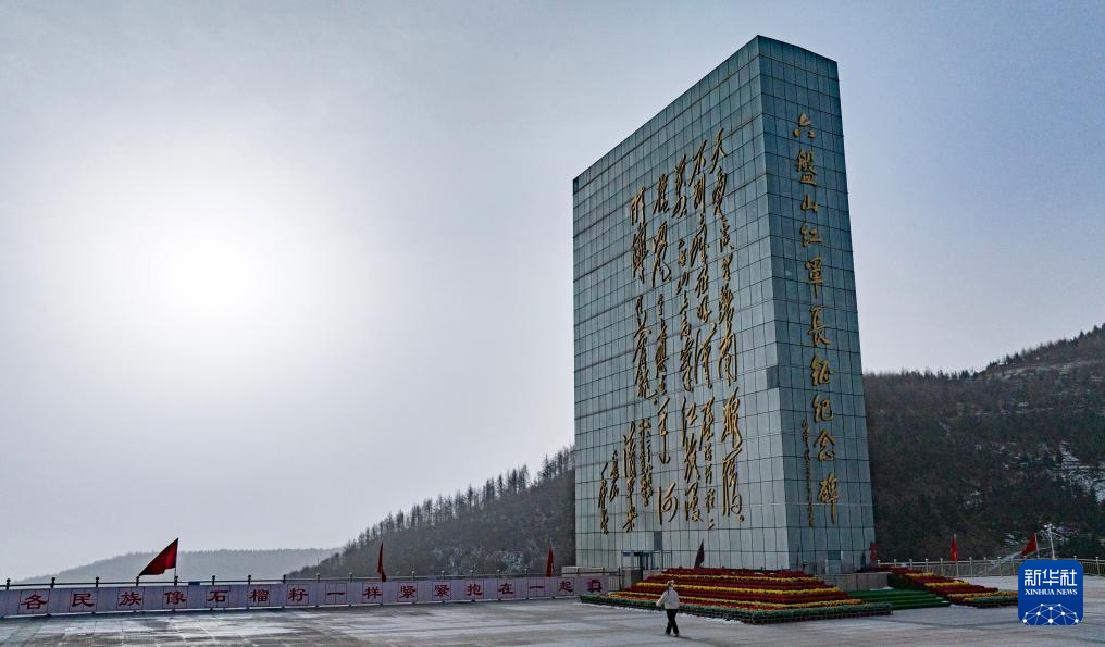 这是1月25日在宁夏固原市隆德县境内拍摄的六盘山红军长征纪念碑(无人机照片)。