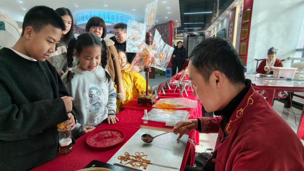 新华网银川2月14日电(记者马思嘉)写春联、做糖画、扎鱼灯、听秦腔……临近春节,宁夏银川市文化馆内人头攒动,“文化馆里过大年”主题活动在此启幕。来自宁夏医学院的留学生代表、非遗传承人及市民群众200余人齐聚一堂,在非遗手作与文艺展演中体验传统年俗。